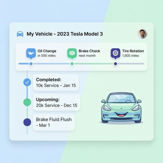 車両ごとの定期メンテナンス予定をタイムラインで管理。走行距離や月数を基準に設定できるため、車検やオイル交換のタイミングを逃しません。
